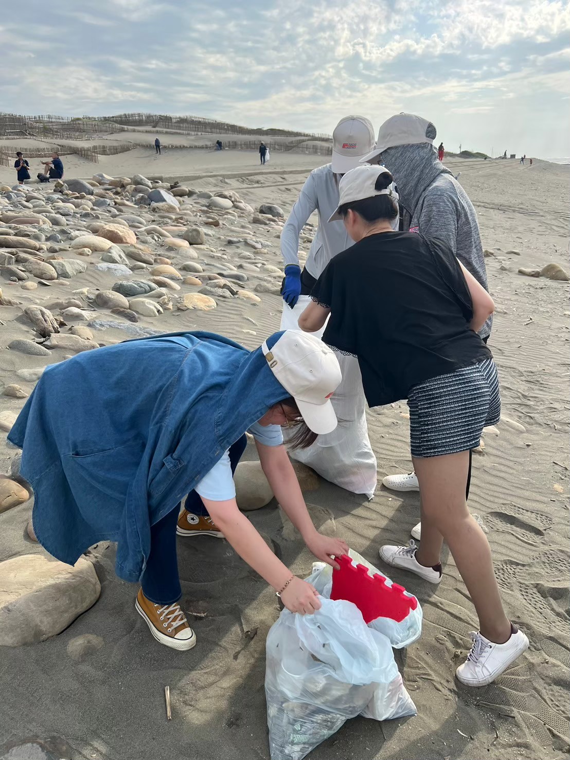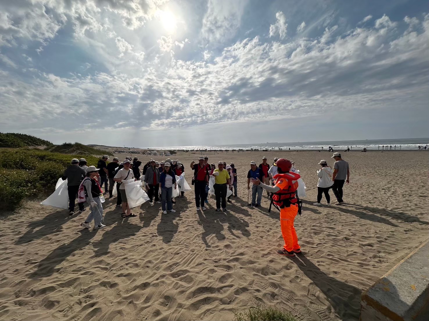 環境教育有別於日常在倉儲物流領域的專業運作,萬商的同仁們化身為環境守護者。在烈日下,團隊沿著海岸線細心拾起掩埋在沙灘中的塑膠碎片、廢棄漁網及生活垃圾。透過這次行動, 同仁不僅親眼目睹海洋廢棄物對生態的威脅,更在團隊協作中建立起深厚的永續共識,達成職場外的跨部門交流與凝聚。